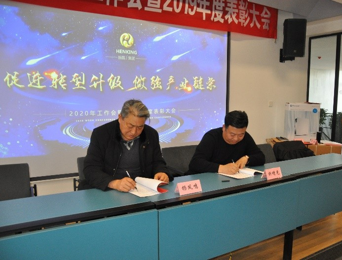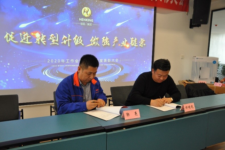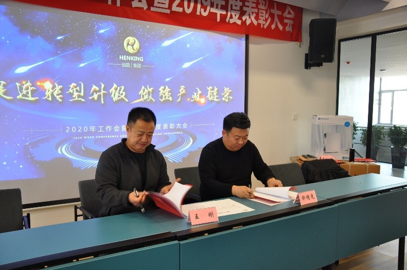 折总强调,做好2019年各项工作,要以安全生产为主线,推进两个项目(中鸡镇煤矿、柠条塔工业园区天然气综合利用项目)建设为重点,以一管(输气管线)两公司(中盛天然气公司、天然气化工公司)油气站点、煤矿点供为依托,延伸产业链条,扩大经营面积,完善市场服务,深入推进激励机制改革、精细化管理、营销服务模式拓展、和谐幸福企业建设工作,着力提升员工的执行能力、专业技术能力、市场服务能力,全面夯实管理基础,全力推动公司发展迈上新台阶。为了更好地贯彻执行工作任务,圆满达成各项安全经营指标,会议最后,由集团董事长折总与各子公司负责人分别签订了2020年度目标责任书与安全责任 书。